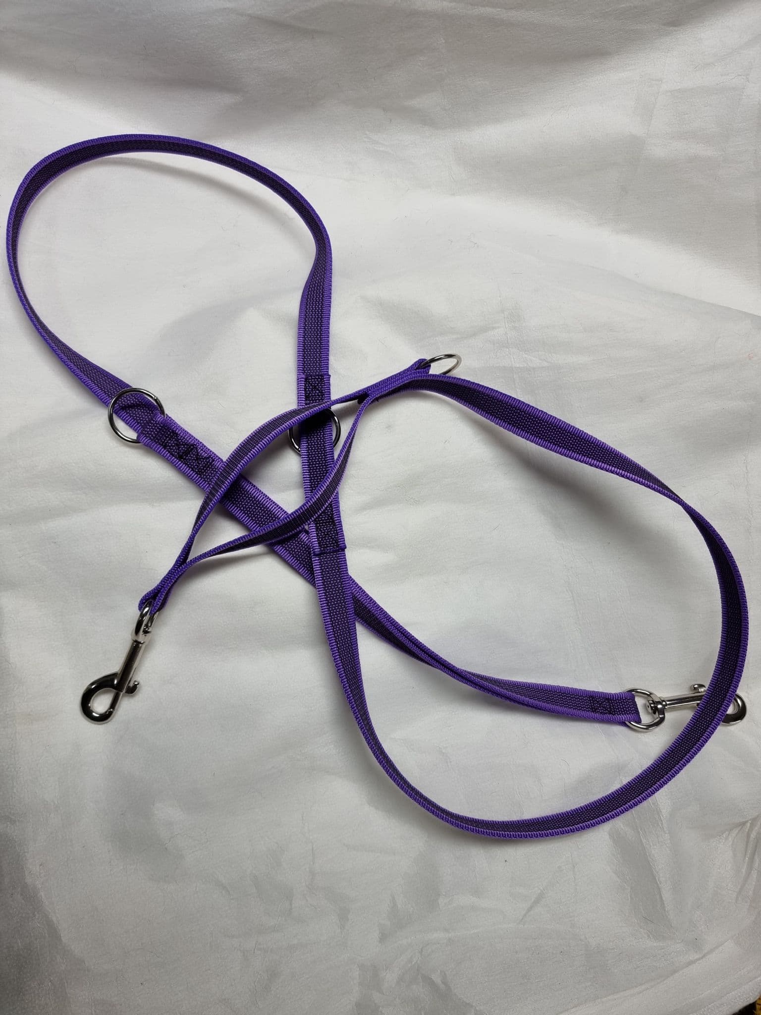 the hooks and rings in various positions it also can be used to walk 2 dogs.